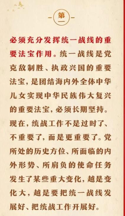 1月16日出版的第2期《求是》雜志刊發(fā)習(xí)近平總書記重要文章《完整、準(zhǔn)確、全面貫徹落實(shí)關(guān)于做好新時(shí)代黨的統(tǒng)一戰(zhàn)線工作的重要思想》。在這篇重要文章中,習(xí)近平總書記充分肯定我們黨百年統(tǒng)戰(zhàn)的歷史性貢獻(xiàn)和新時(shí)代統(tǒng)戰(zhàn)工作取得的歷史性成就,用“十二個(gè)必須”對關(guān)于做好新時(shí)代黨的統(tǒng)一戰(zhàn)線工作的重要思想作出概括,強(qiáng)調(diào)關(guān)于做好新時(shí)代黨的統(tǒng)一戰(zhàn)線工作的重要思想,是黨的統(tǒng)一戰(zhàn)線百年發(fā)展史的智慧結(jié)晶,是新時(shí)代統(tǒng)戰(zhàn)工作的根本指針,全黨必須完整、準(zhǔn)確、全面貫徹落實(shí)。